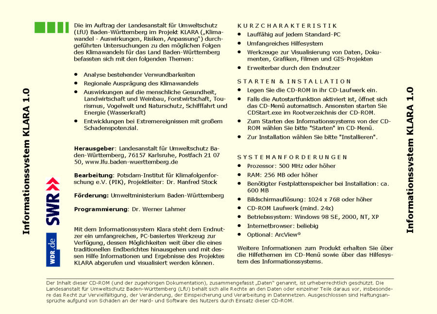 Die mit der Erstellung des "Informationssystems KLARA" durchgeführten Arbeiten
